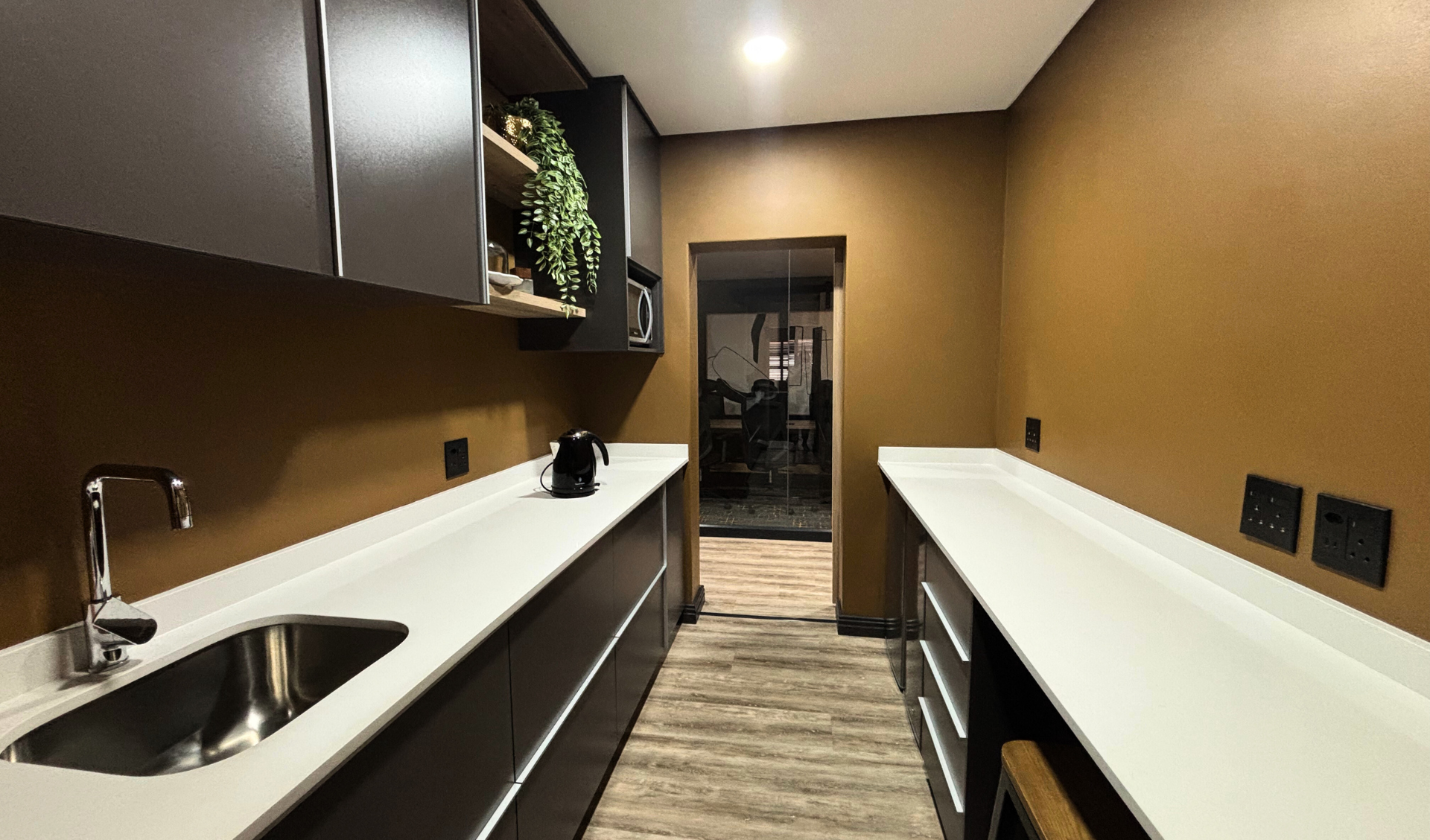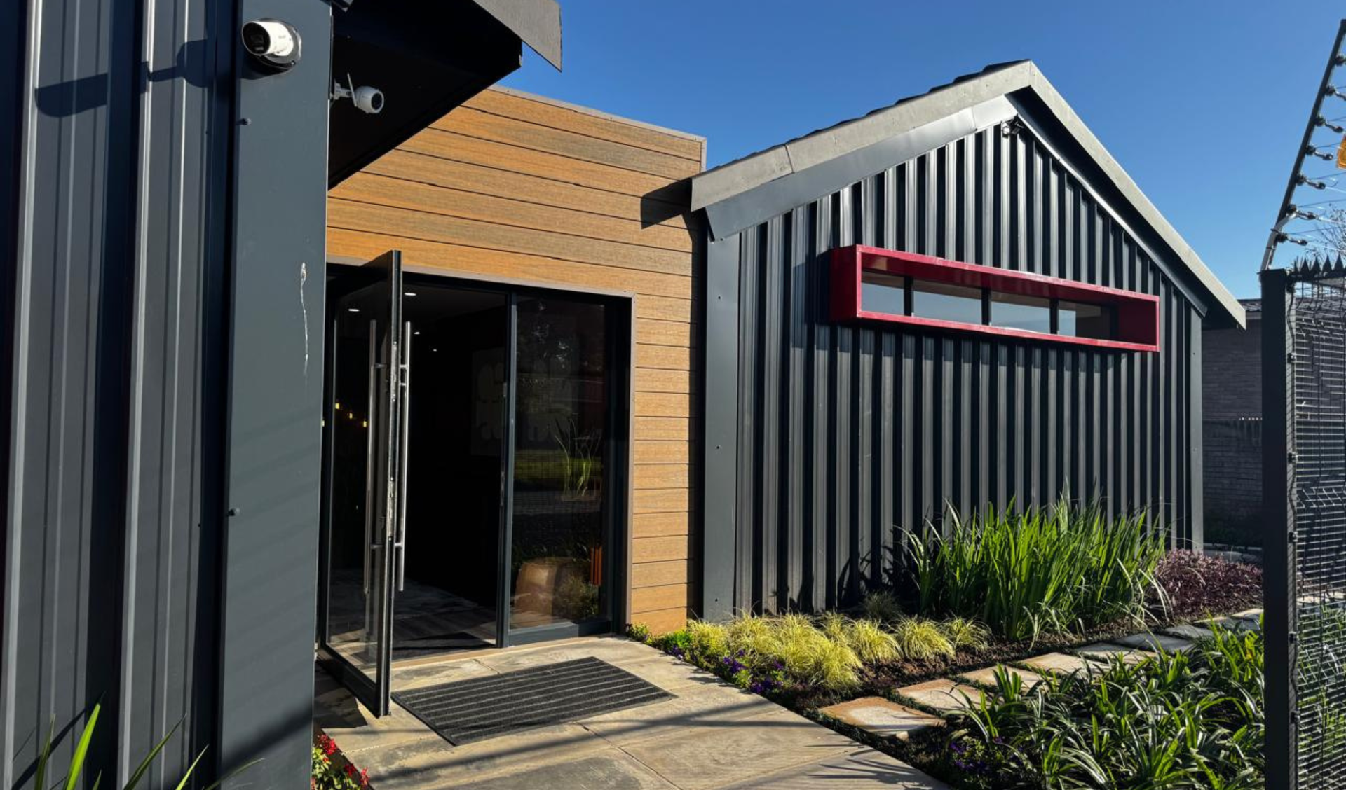 Retention of the original pitched roof form was balanced with a modern industrial material palette, while revised window openings were introduced to improve natural daylight within internal workspaces. The resulting design expresses a contemporary office identity through clean geometric forms and material contrast.