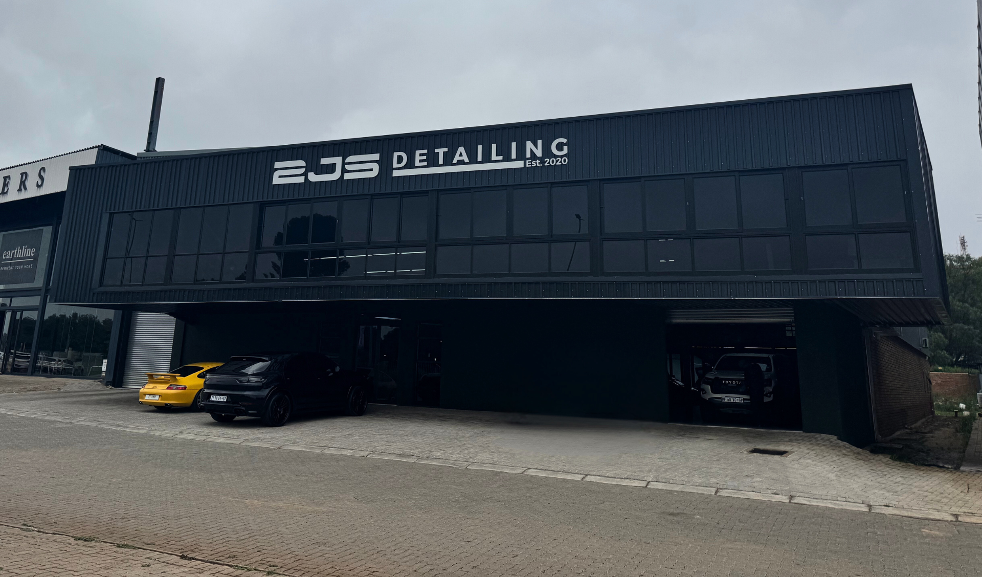 This new-build automotive detailing facility was developed as a purpose-built commercial workspace. The design adopts a contemporary industrial architectural language, incorporating a cantilevered upper-level volume to provide sheltered customer parking at ground level.